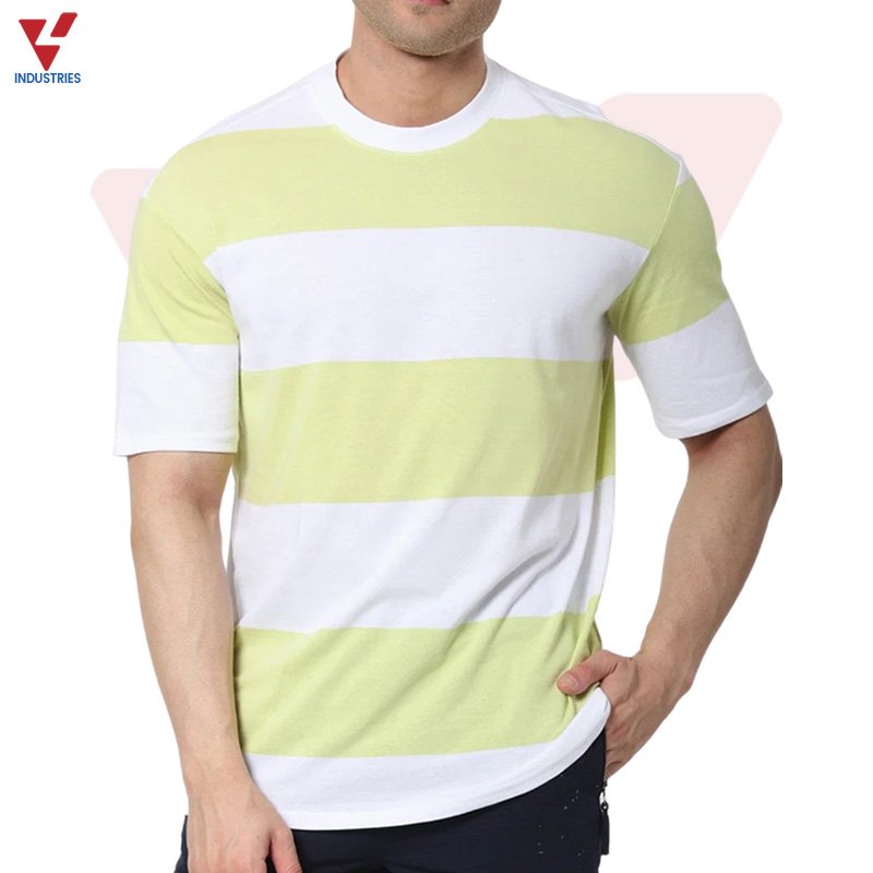 LIME GREEN STRIPED ORGANIC COTTON CREW NECK T-SHIRT