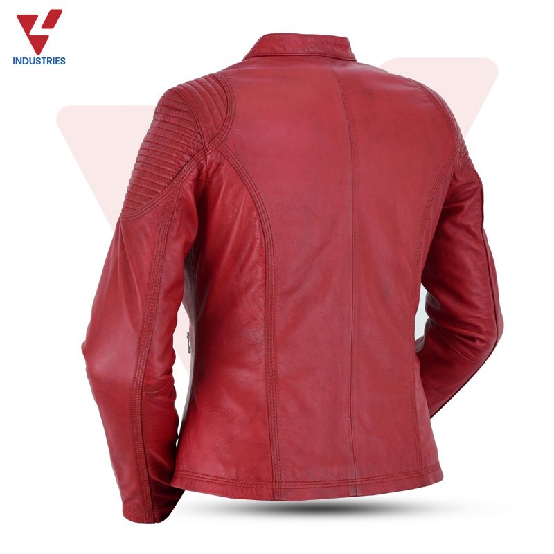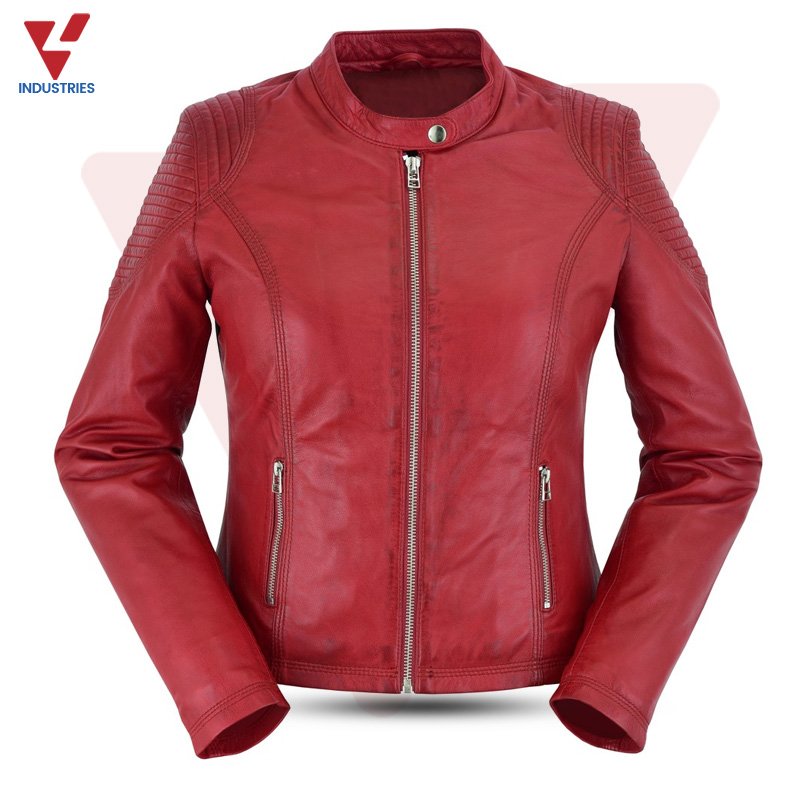 Smart Women’s Fashion Motorcycle Leather Jacket Soft Lambskin Leather Jacket with Satin Inner Liner & Storage pockets