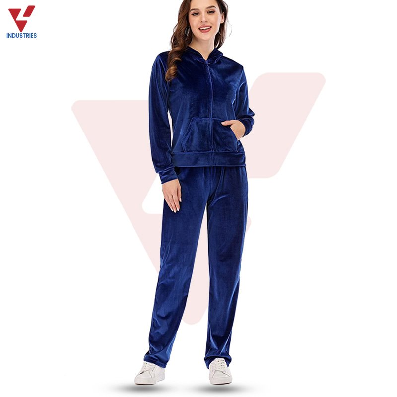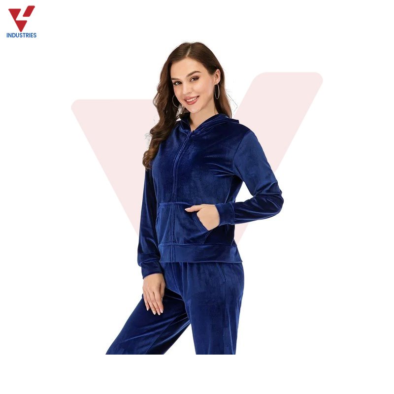 Tracksuit Solid Velvet Women’s Full Zip Jacket & Sweatpants Pant Joggers Hooded