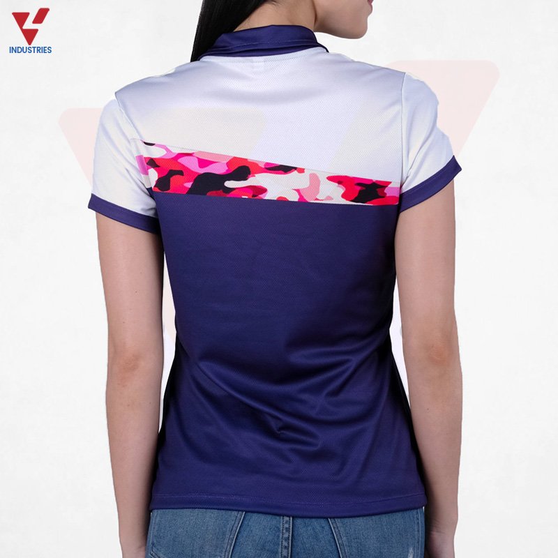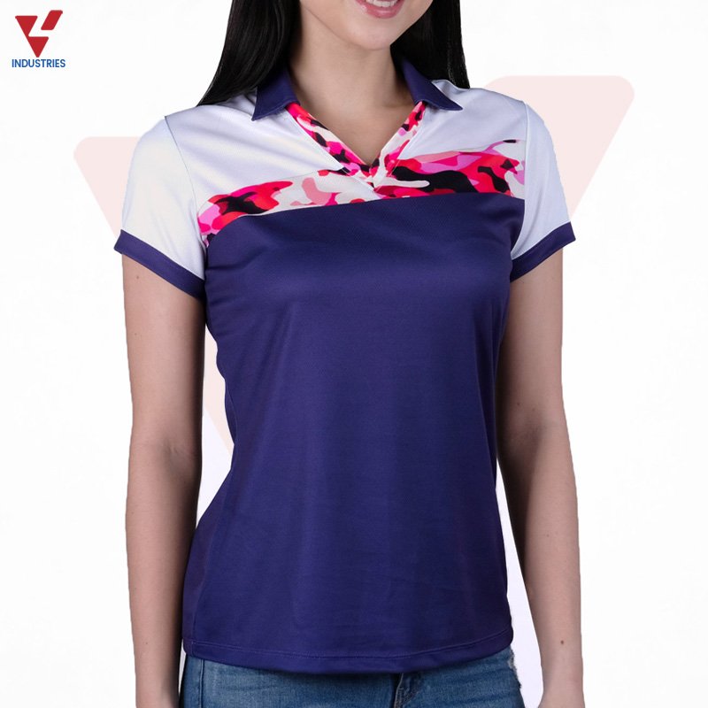 The women’s sports tee collared shirt is a hybrid between a t-shirt and a polo shirt, but without the buttons that a traditional polo shirt has.• Regular Fit